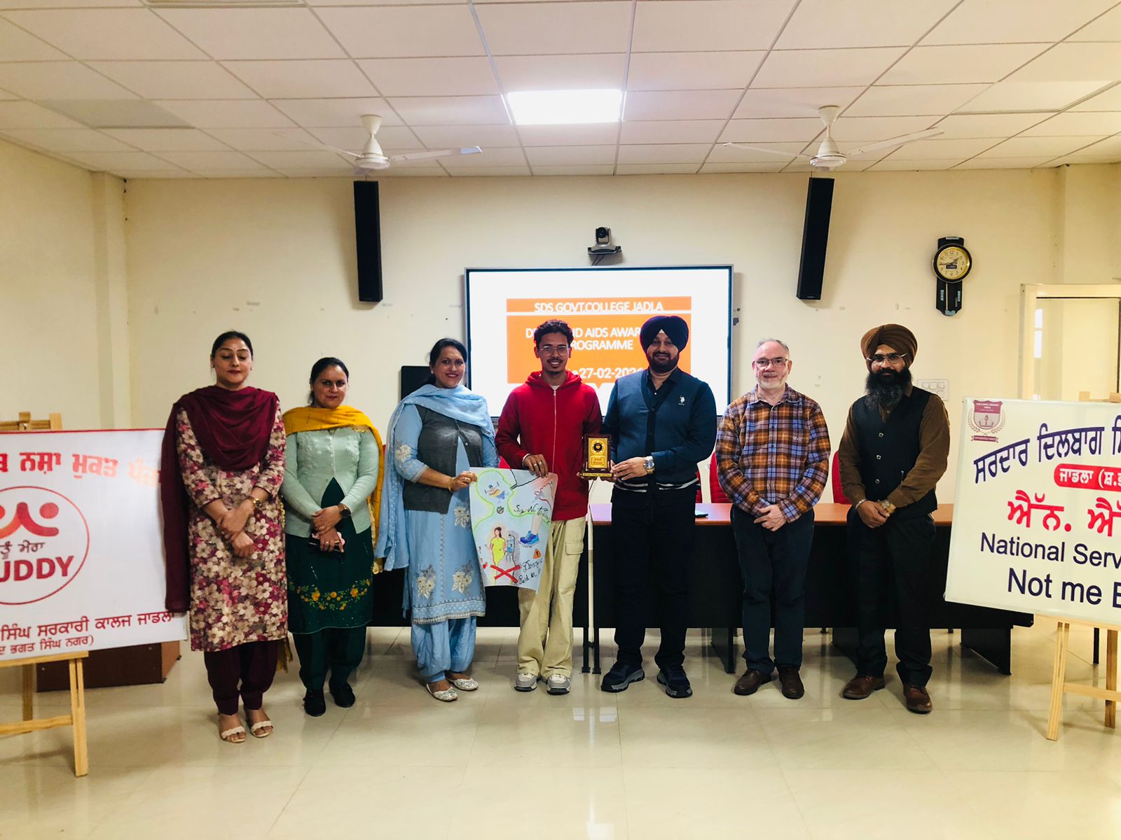 ਸਰਦਾਰ ਦਿਲਬਾਗ ਸਿੰਘ ਸਰਕਾਰੀ ਕਾਲਜ ਜਾਡਲਾ ਵਿਖੇ ਵਿਦਿਆਰਥੀਆਂ ਵਿੱਚ ਸਮਾਜਿਕ ਚੇਤਨਾ, ਸਿਹਤ ਸੰਬੰਧੀ ਜਾਗਰੂਕਤਾ ਅਤੇ ਰਚਨਾਤਮਕ ਸੋਚ ਨੂੰ ਉਤਸ਼ਾਹਿਤ ਕਰਨ ਦੇ ਉਦੇਸ਼ ਨਾਲ ਨਸ਼ਾ ਵਿਰੋਧੀ ਕਮੇਟੀ ਅਤੇ ਐਨ.ਐਸ.ਐਸ. ਦੇ ਸਾਂਝੇ ਪ੍ਰੋਗਰਾਮ ਤਹਿਤ ਮਿਤੀ 27 ਫਰਵਰੀ 2026 ਨੂੰ ਨਸ਼ਾ ਵਿਰੋਧੀ ਅਤੇ ਏਡਸ ਜਾਗਰੂਕਤਾ ਵਿਸ਼ੇ ਉੱਪਰ ਪੋਸਟਰ ਮੇਕਿੰਗ ਮੁਕਾਬਲੇ ਦਾ ਆਯੋਜਨ ਕੀਤਾ ਗਿਆ। ਇਹ ਮੁਕਾਬਲਾ ਕਾਲਜ ਦੇ ਪ੍ਰਿੰਸੀਪਲ ਪ੍ਰੋਫੈਸਰ ਡਾ. ਹਰਜਿੰਦਰ ਸਿੰਘ, ਪ੍ਰਿੰਸੀਪਲ ਕਮ ਡਿਪਟੀ ਡਾਇਰੈਕਟਰ ਉਚੇਰੀ ਸਿੱਖਿਆ ਵਿਭਾਗ ਪੰਜਾਬ ਦੀ ਯੋਗ ਅਗਵਾਈ ਅਤੇ ਦਿਸ਼ਾ-ਨਿਰਦੇਸ਼ ਹੇਠ ਸਫਲਤਾਪੂਰਵਕ ਸੰਪੰਨ ਹੋਇਆ। ਇਸ ਪ੍ਰੋਗਰਾਮ ਦਾ ਮੁੱਖ ਉਦੇਸ਼ ਨੌਜਵਾਨ ਪੀੜ੍ਹੀ ਨੂੰ ਨਸ਼ਿਆਂ ਦੇ ਮਾਰੂ ਪ੍ਰਭਾਵਾਂ ਅਤੇ ਏਡਸ ਵਰਗੀ ਘਾਤਕ ਬਿਮਾਰੀ ਤੋਂ ਬਚਾਅ ਸੰਬੰਧੀ ਜਾਗਰੂਕ ਕਰਨਾ ਸੀ।